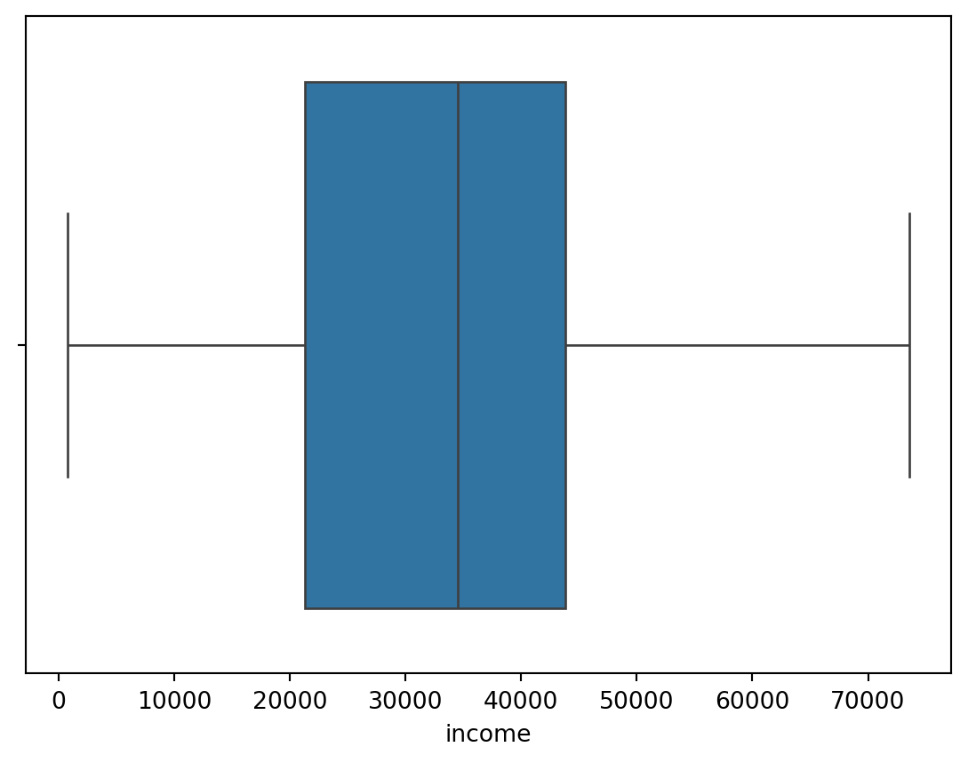 sns.boxplot(x = "income", data = default);