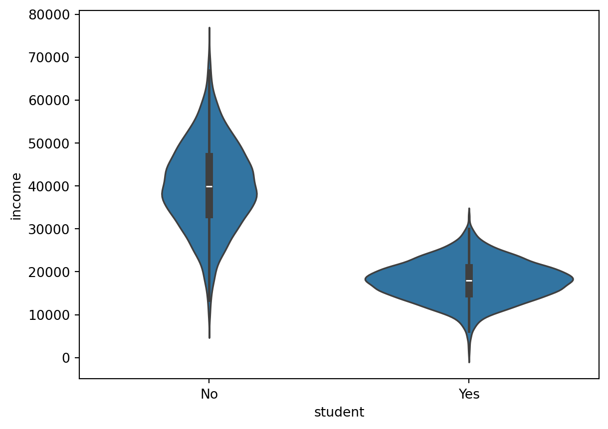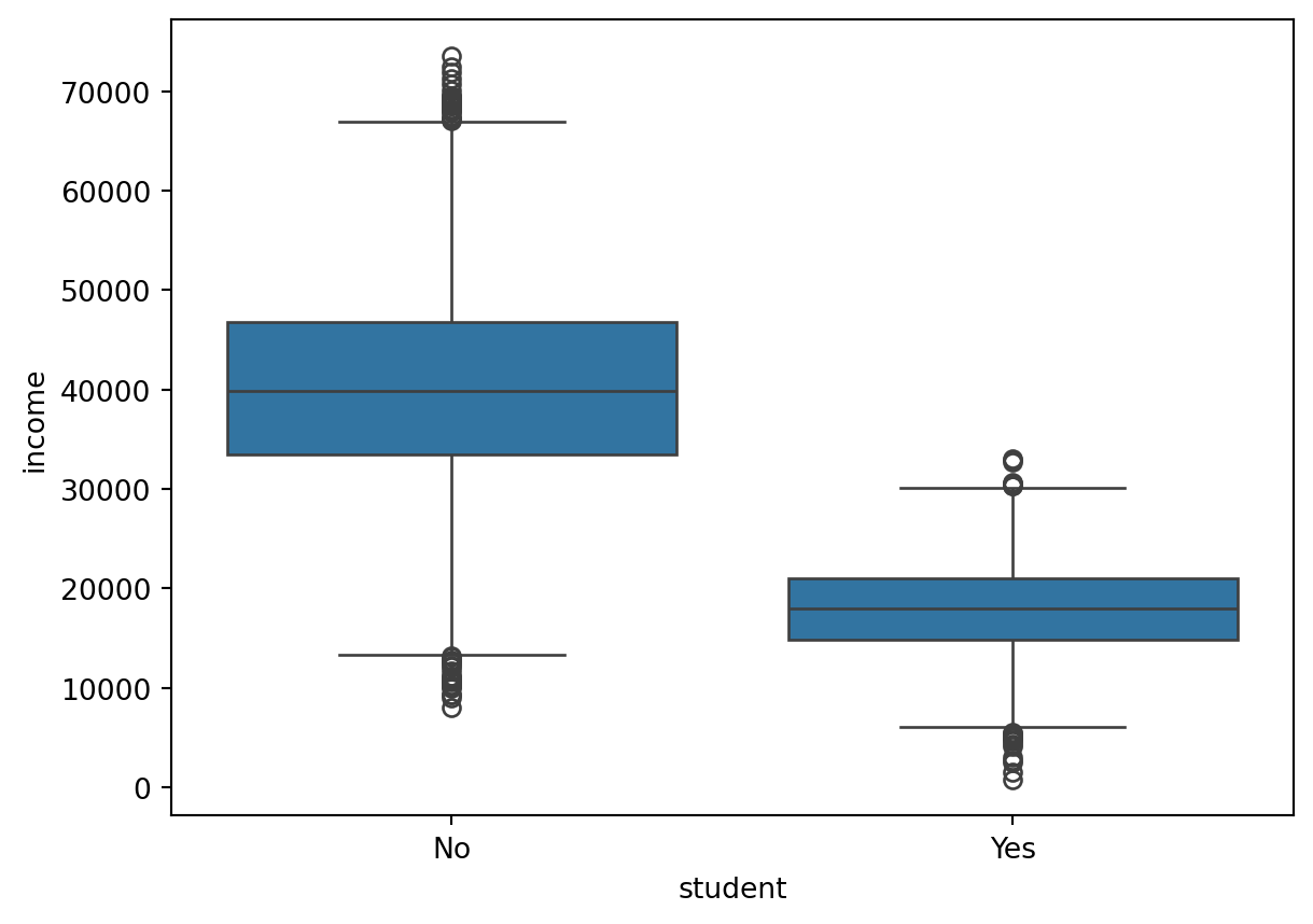 print(default.groupby("student")["income"].std())Mean grouped by student status: