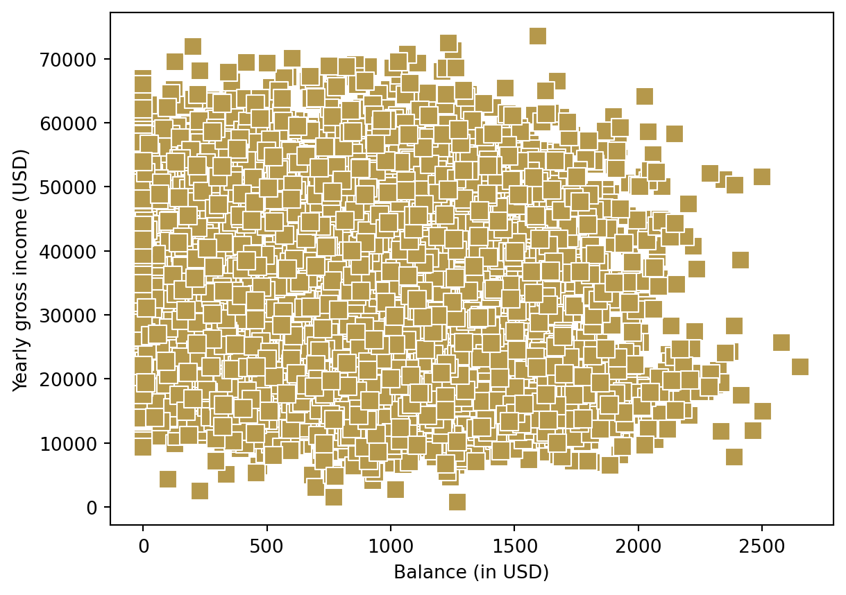 plt.xlabel("Balance (in USD)");